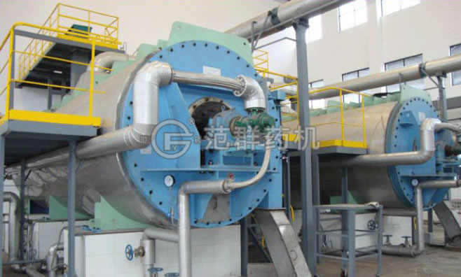 空心軸上密集排列著空心槳葉,熱介質(zhì)經(jīng)空心軸流經(jīng)槳葉。單位有效容積 內(nèi)傳熱面積很大(一般單臺雙軸槳葉面積≤ 200m2 左右;單臺四軸槳葉面積 ≤ 400m2 左右),熱介質(zhì)溫度從60~320℃,可以是水蒸氣,也可以是液體型: 如熱水、導(dǎo)熱油等。間接傳導(dǎo)加熱,熱量均用來加熱物料,熱量損失僅為通 過器體保溫層和排濕向環(huán)境散熱。