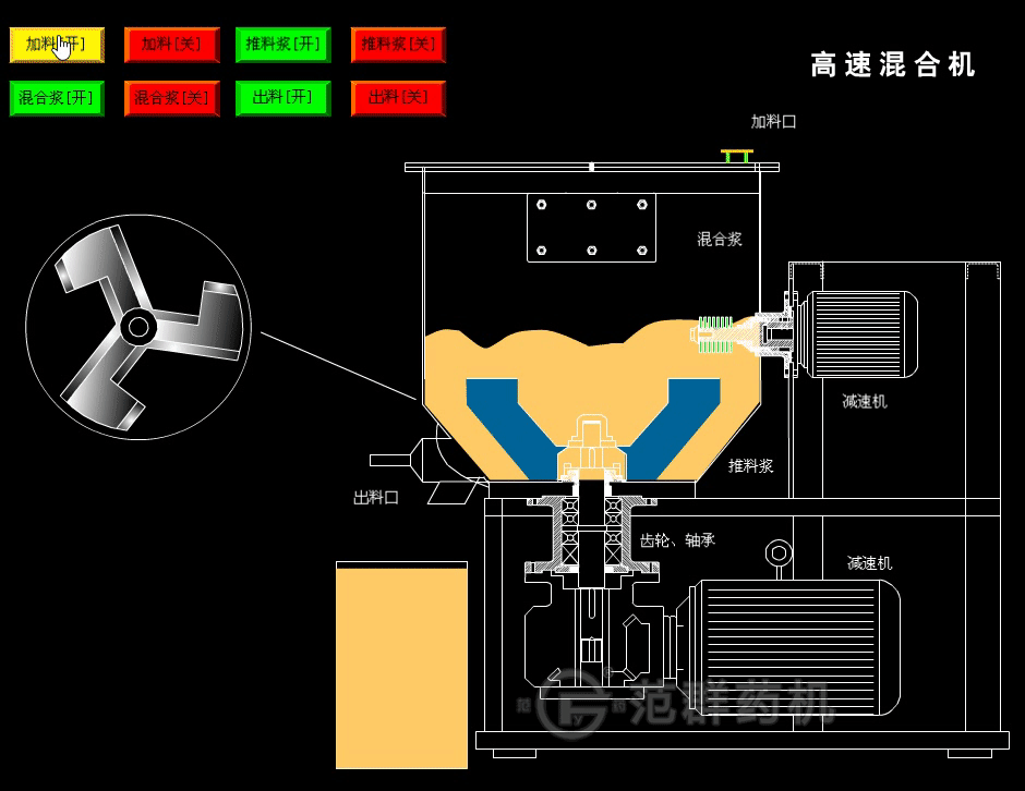ZGH型立式高速混合機由底部送料葉漿和高速碎料葉漿組成。送料葉漿將底部物料連續(xù)不斷沿筒壁向上送料。高速碎料葉漿將料葉漿送來的物料徹底打碎。使物料循環(huán)形成旋渦狀,在教短時間內(nèi)達到將物料混合均勻的目的。