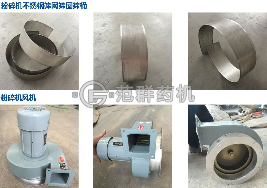 粉碎機(jī)配件:粉碎機(jī)不銹鋼篩網(wǎng)篩圈篩桶、粉碎機(jī)風(fēng)機(jī)。