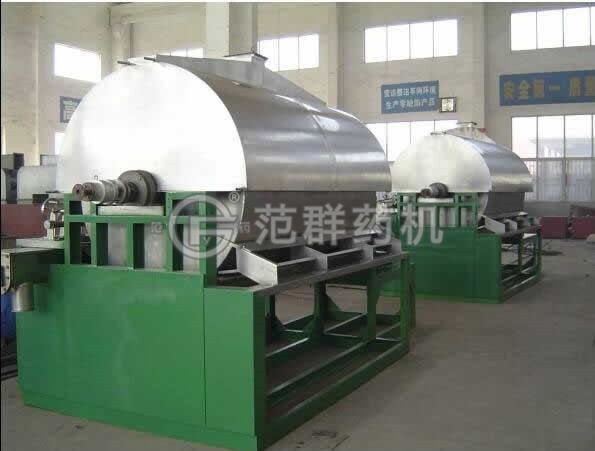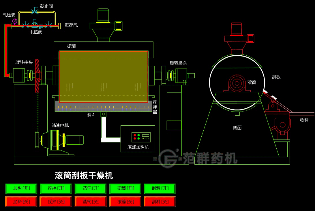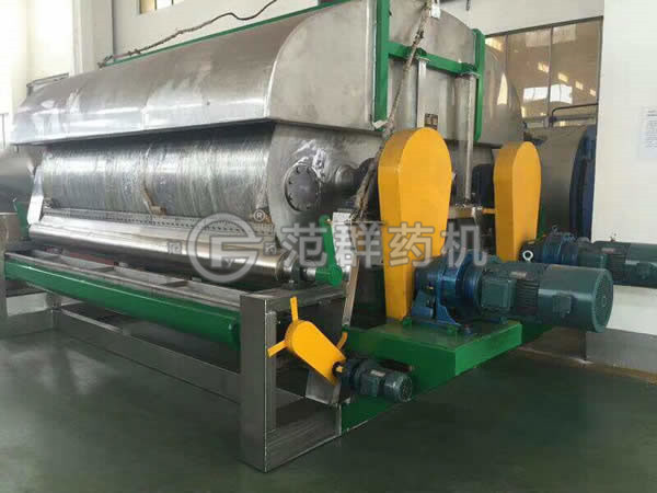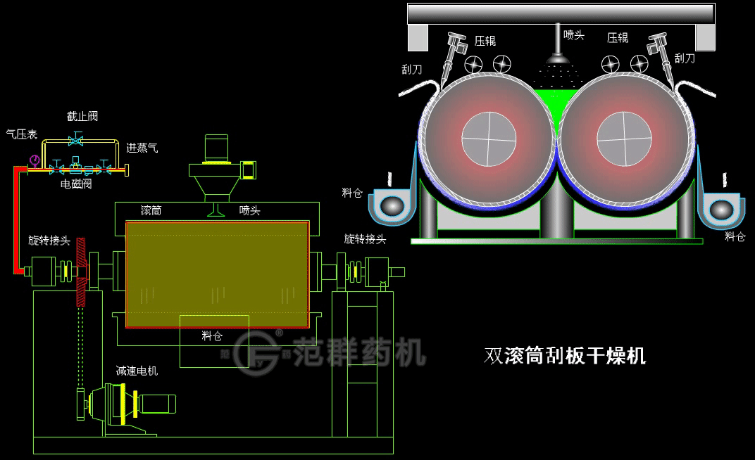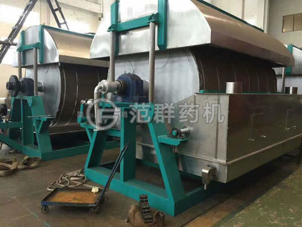 滾筒干燥機(jī)是一種內(nèi)加熱傳導(dǎo)型轉(zhuǎn)動干燥設(shè)備,濕物料在滾筒外壁上獲得以導(dǎo)熱方式傳遞的熱量,脫除水分,達(dá)到所要求的濕水含量.熱量由筒內(nèi)壁傳到筒外壁,再穿過料膜,其熱效率高,可連續(xù)操作,故廣泛應(yīng)用于液態(tài)物料或帶狀物料的干燥,對膏狀和粘稠物料更適用。 可分為二種形式:單筒、雙筒干燥機(jī)。另外也可按操作壓力分常壓和減壓兩種形式。